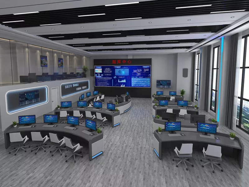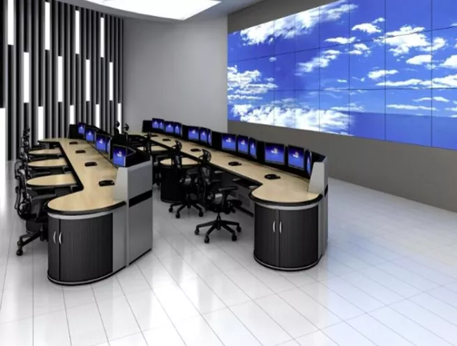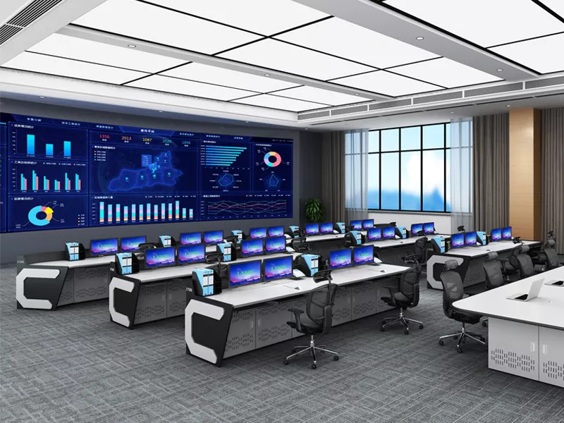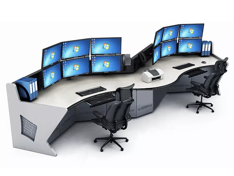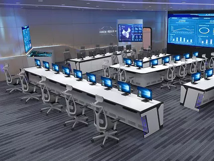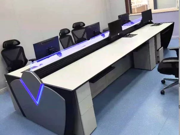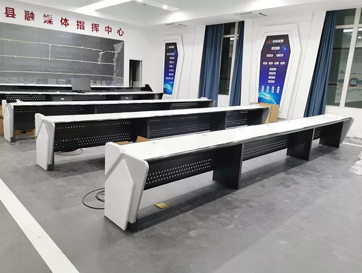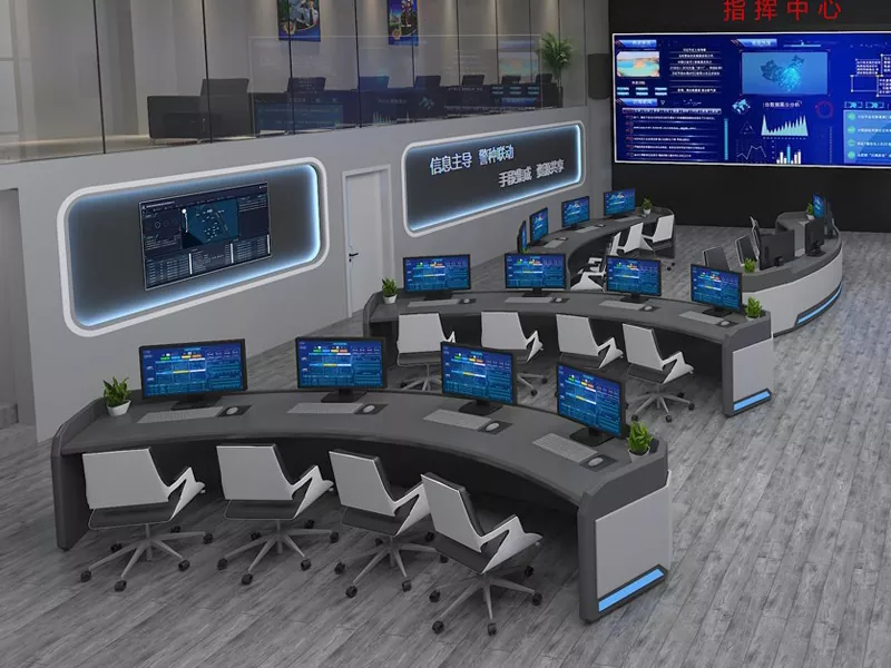 2. Структура и размер: Изберете прав, L-образен, U-образен или персонализиран дизайн въз основа на пространството на командния център и оперативните нужди, оставяйки достатъчно място за оборудване и персонал.