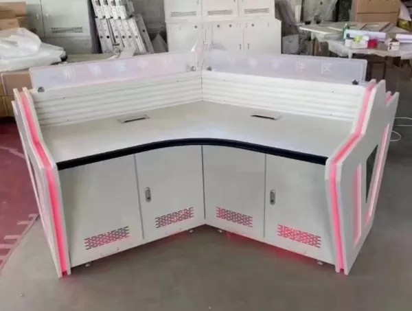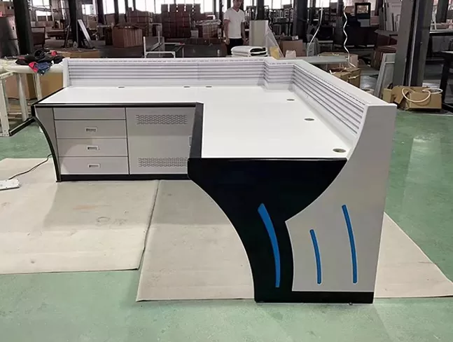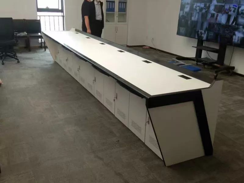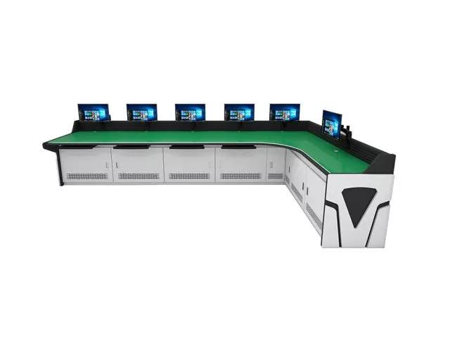 Модулната конзола за наблюдение интегрира скрити кабелни скари и организирани канали за окабеляване, за да намали бъркотията и да опрости поддръжката. Регулируемата работна височина и устойчивите на износване работни повърхности подобряват комфорта на оператора по време на дълги смени.
